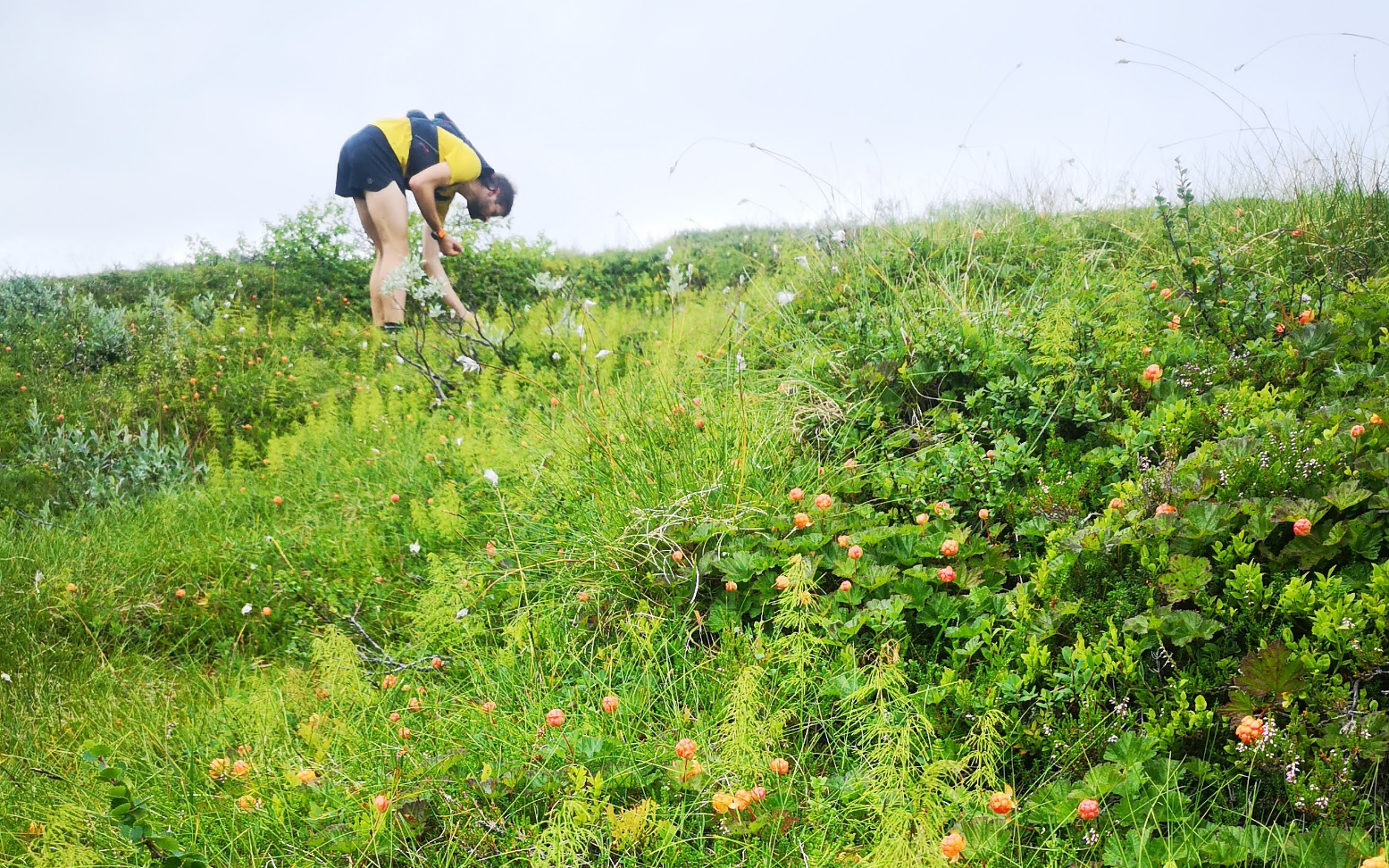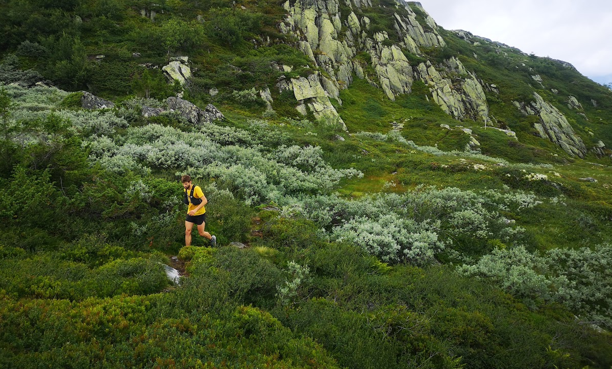 Paul Ogier løper på en umerket sti etter Ørnenipa med kurs for Bitringsnatten og lunsj på Tuddal Høyfjellshotell. Her nærmer han seg forretten; et molteparadis. Foto: Bjørnar Eidsmo